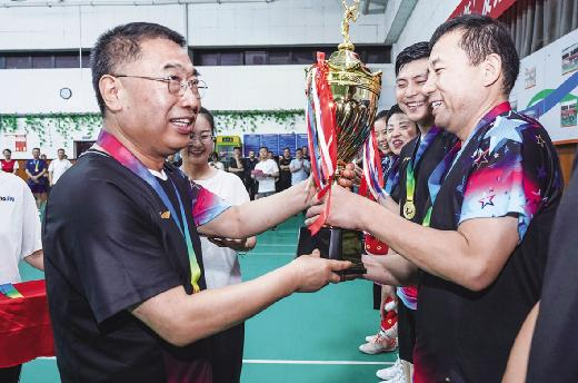 7月3日,陕汽控股2025年度“向‘新’发力向‘质’而行”职工羽毛球集团赛在车城花园羽毛球馆圆满落幕。公司党委书记、董事长袁宏明出席活动并为获奖代表队颁奖。